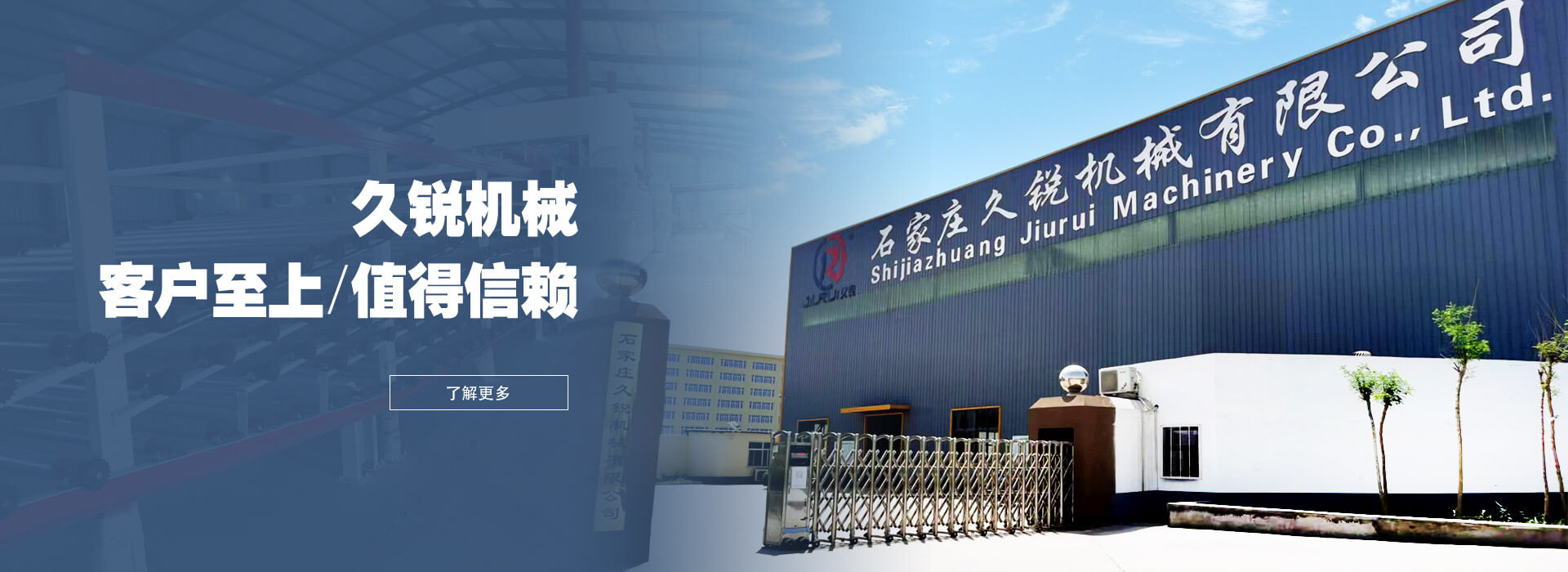 石家莊久銳機械有限公司是2018年籌建,集設計、制造、銷售新型建材機械設備于一體的民營企業,可提供精準運行的紙面石膏板生產線、石膏粉生產線、礦棉吸音板生產線、硅酸鈣板生產線、水泥壓力板生產線等建材設備的方案及先進的設備?! 」緭碛型陚涞纳a體系,技術一流的員工隊伍,配有成套加工設備100余臺套,斥巨資引進大型數控龍門銑床、數控鏜床、數控加工中心、數控機床等高端設備,努力把機械零部件的制造能力達到高效、精準,為“久銳”牌高性能整機提供堅實的保障;進而使我公司提供高質量、高性能、高效率、節能環保、品質卓越的生產線于客戶。使客戶得到先進的生產技術、精湛的工藝流程、優良的產品質量、真誠及時到位的售后服務。...